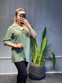 یقه انگلیسی: این نوع یقه حالتی کلاسیک و در عین حال مدرن به شومیز داده است. یقه انگلیسی باعث میشود بالاتنه کشیدهتر دیده شود و برای ست کردن با انواع گردنبندهای ظریف عالی است.
