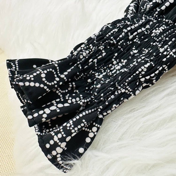 آستینهای فانوسی (Bishop Sleeves): مچهای کشدوزی و چیندار (Smocked cuffs) نه تنها پوشیدن لباس را راحت میکند، بلکه فرم پفکی و زیبایی به آستینها میدهد که ترند سال ۲۰۲۴ و ۲۰۲۵ است.