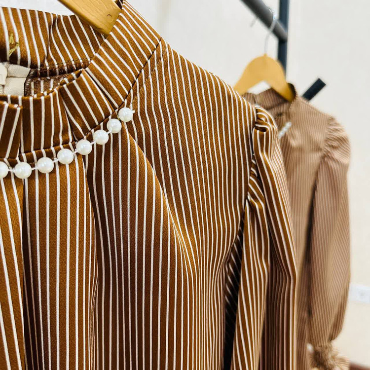 * طراحی: طرح راه راه، ظرافت و شیکپویی را به ارمغان آورده است. آستینهای پفی، المان مدرن و فریبندهای به طراحی اضافه کردهاند.
