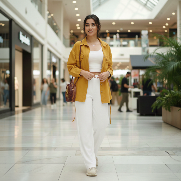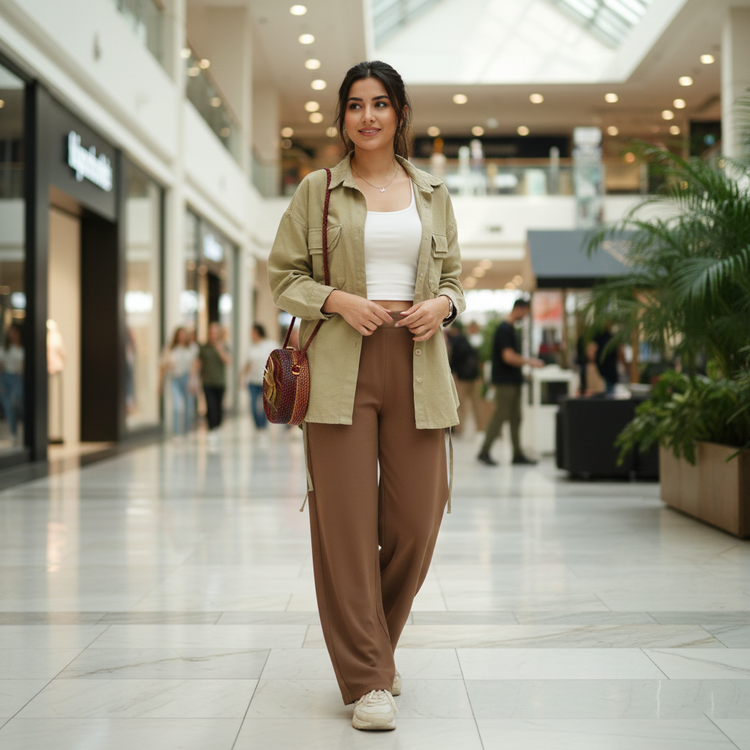 استایل پیشنهادی: مانند تصویر، ترکیب این شومیز با یک کراپتاپ سفید و شلوار پارچهای بگ قهوهای، تضاد رنگی دلنشینی ایجاد میکند که برای خرید، پیادهروی و حتی محیطهای کاری غیررسمی عالی است.